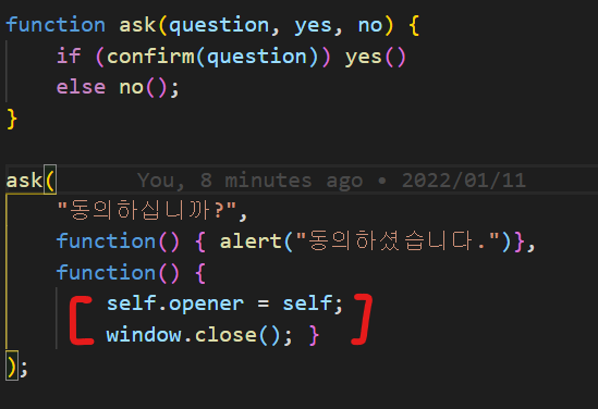 JS로 윈도우 창을 닫을때 window.close( ) 를 사용하여 창을 강제종료한다.