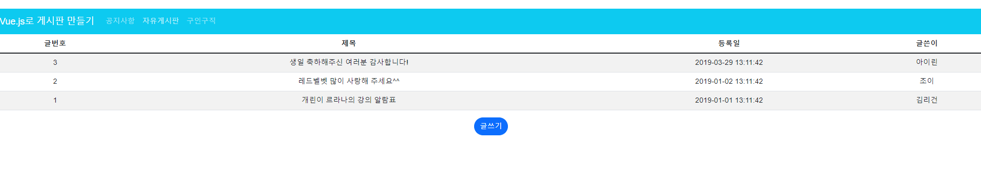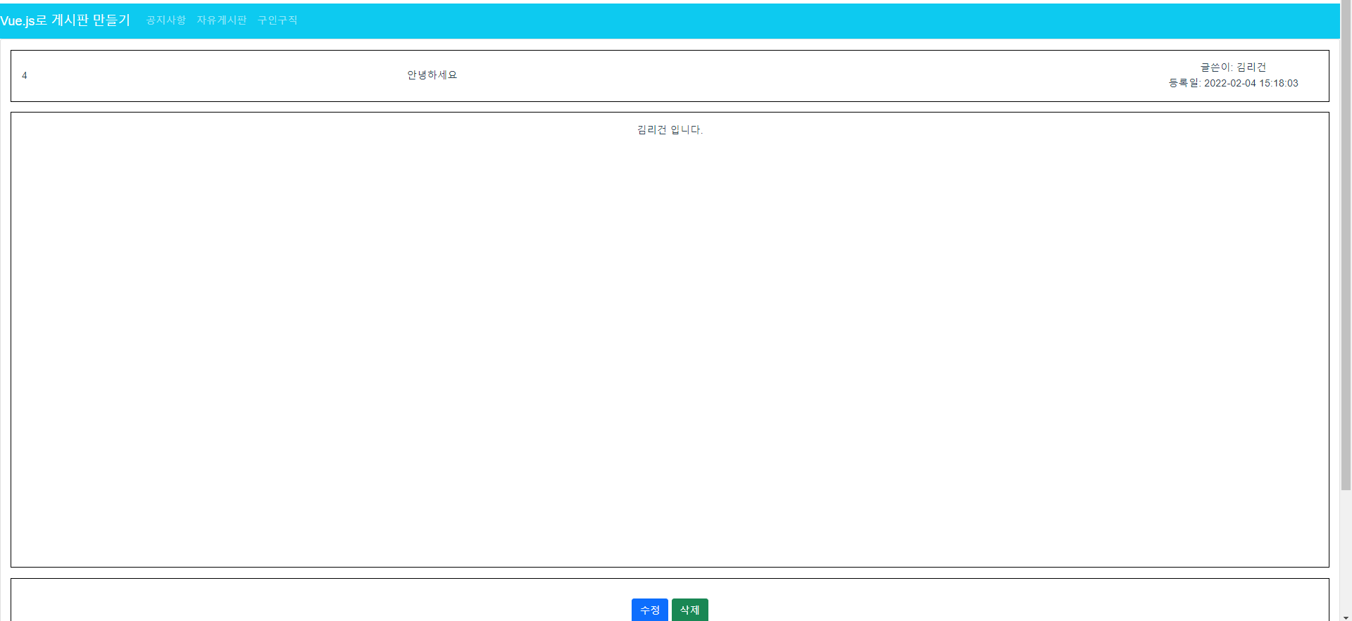 Vue.js를 활용하여 게시판 CRUD를 작성했습니다.