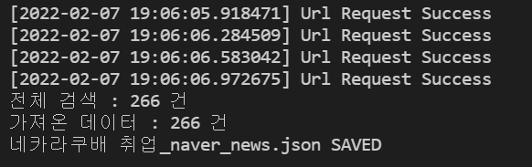 # getNaverSearch() 호출하여 새 결과를 저장하고 for 문 다시 반복