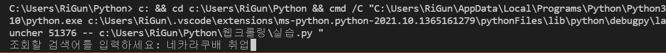 srcText = input('조회할 검색어를 입력하세요: ') # 사용자 입력으로 받은 검색어 저장