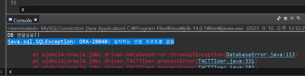 JDBC 적재후 DB와 연결중 오류가 발생했다.