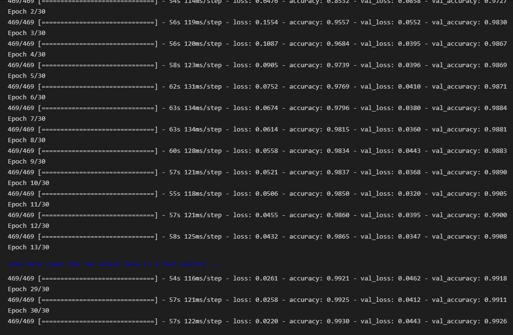 hist = cnn.fit(x_train, y_train, batch_size=128, epochs=30, validation_data=(x_test, y_test))