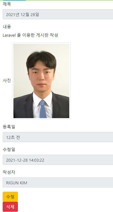 Laravel 를 사용하여 DB(Maria)를 통해 게시판을 구현한 결과물입니다.