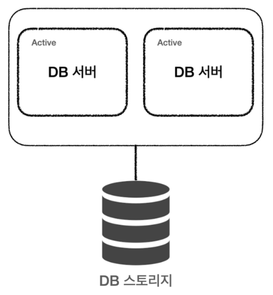 이때, DB서버는 서로 다른 인스턴스에서 동작한다. 이 경우 서버 두 대를 하나로 묶어 운영한다.