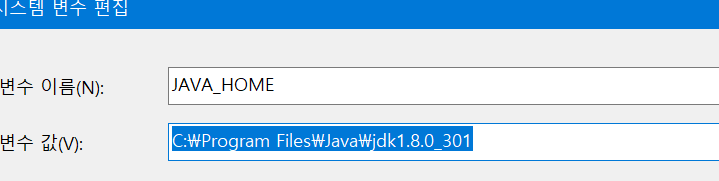 우선 JDK 환경변수를 설정해줘야 하는데 , jdk1.8.~~ 라는 식의 버전만 가져와야한다 ,