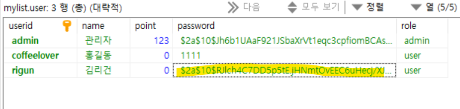 role 에서 admin 인 계정을 이용해서 로그인하면 관리자 권한을 받아 사용자 추가 등이 가능하다.