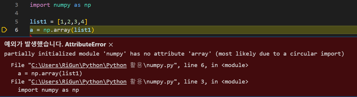 실제 해당 파일명은 numpy.py 인것을 알 수가 있다.
