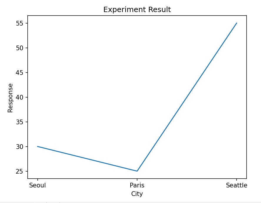 plt.plot(["Seoul", "Paris", "Seattle"], [30,25,55])