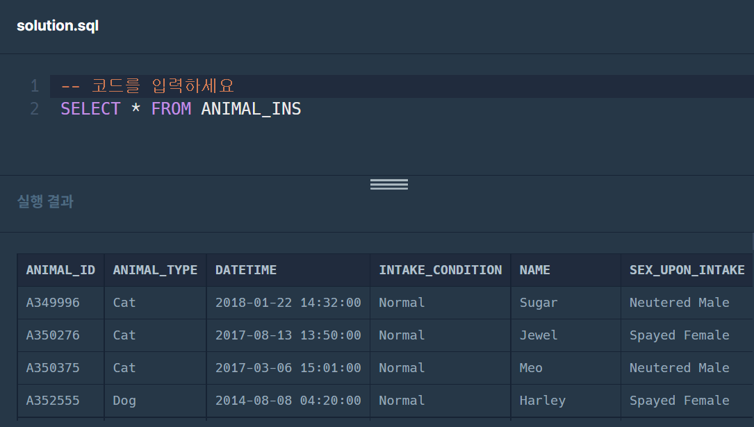 테이블에 해당하는 모든 칼럼들을 조회하는 sql 문을 작성하라